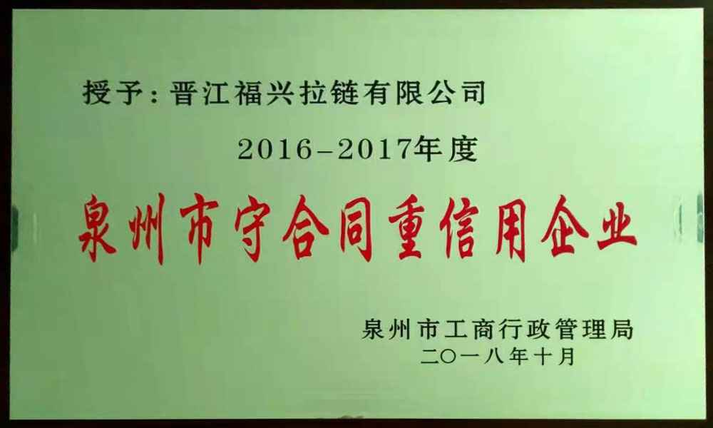 2016-2017年度泉州市重合同守信用企业
